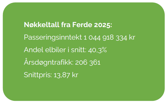 Sekretariatet for Bymiljøpakken har hentet ut oppdaterte tall fra Ferde for 2025.